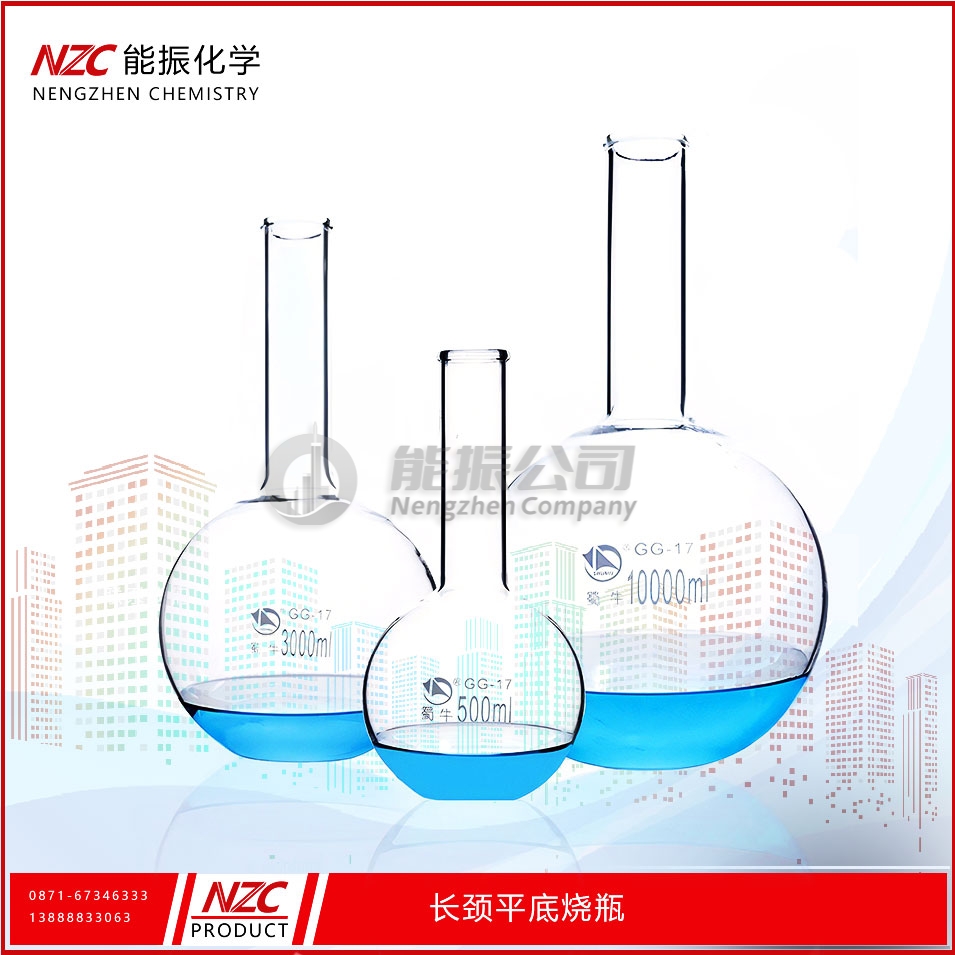 圆平底长颈烧瓶是一种常用的实验室玻璃器具,广泛应用于化学实验、物理实验和生物实验中。该烧瓶的设计结合了圆底和长颈的特点,圆底部分提供了良好的加热效果,而长颈则便于连接其他实验设备,如冷凝管、分液漏斗等。烧瓶通常由高硼硅酸盐玻璃制成,具有优良的耐热性和耐化学性,能够承受高温和多种化学试剂的侵蚀。