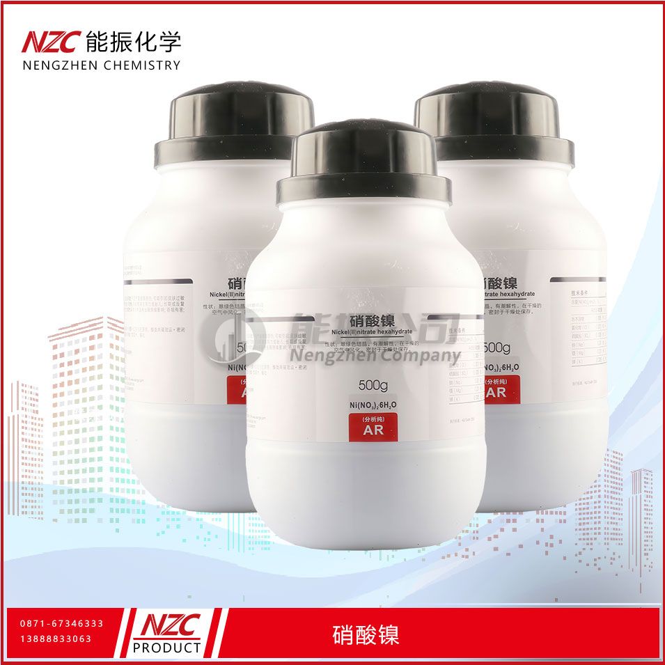 硝酸镍是一种无机化合物,化学式为Ni(NO3)2·6H2O,为绿色或蓝绿色结晶,易溶于水,微溶于乙醇。它是一种重要的镍盐,广泛应用于电镀、催化剂、陶瓷、玻璃、颜料、医药等领域。硝酸镍具有强氧化性,在高温下易分解,释放出有毒的氮氧化物气体。